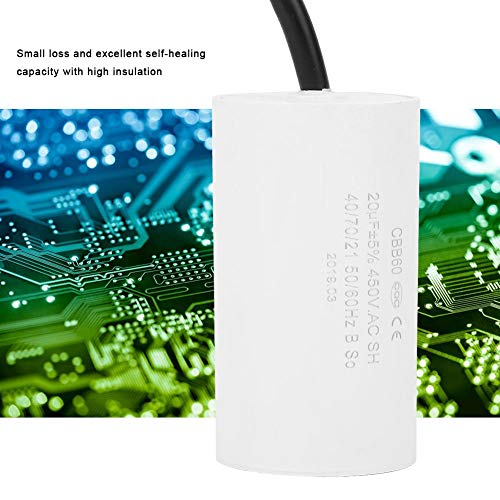 Condensatore di Avviamento per Motore 20 µF 450 V CBB60 con Cavo di Collegamento, Pompa Condensatore di Avviamento, Resistenza in Serie Equivalente (ESR): 0.2