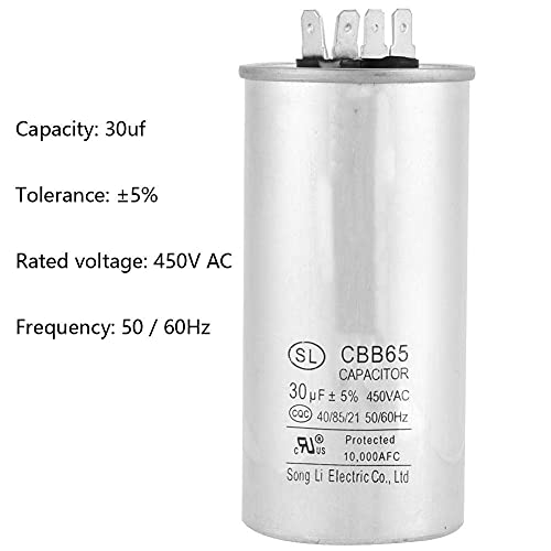 Condensatore CBB65, Condensatore motore cilindrico 30uF AC 450V Condensatore avviamento motore per condizionatore d'aria Motori Frigorifero