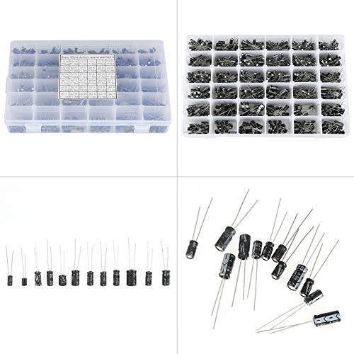 Condensatori elettrolitici, 990 pezzi 36 valori Condensatori elettrolitici assortiti Assortimento Kit Set Range 0.1uF - 1000uF per TV, monitor LCD, radio, stereo, gioco