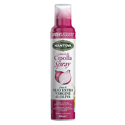 Condimento alla Cipolla spray a base di Olio Extra Vergine di Oliva. Il gusto pungente e morbido della Cipolla incontra il pregiato Olio Extra Vergine di Oliva Mantova, per dar vita ad un eccellente e gradevole condimento.