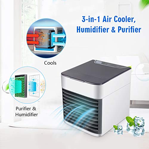 Condizionatore Portatile 3-in-1 Mini Air Cooler USB Evaporativo Dispositivo di Raffreddamento LED Umidificatore Purificatore Ventilatore ad Aria Condizionata per Casa/Ufficio/Camper/Garage