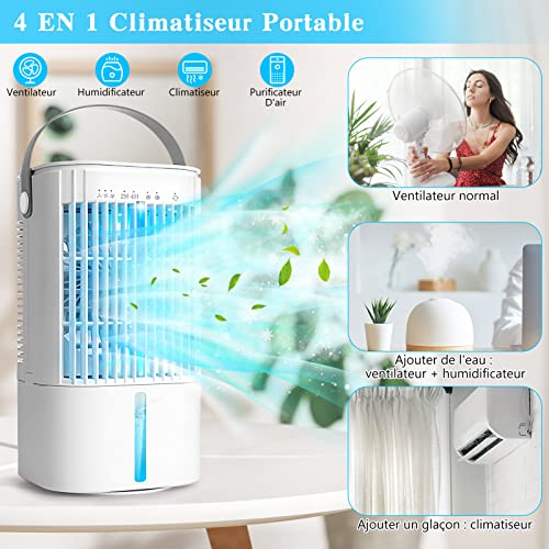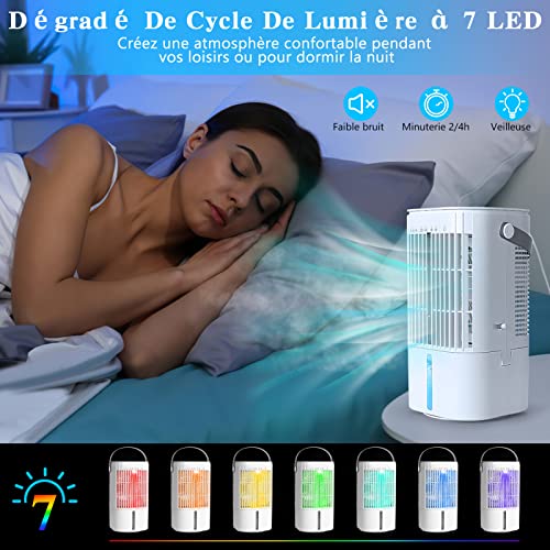 Condizionatore Portatile, TedGem Mini Condizionatore, Raffreddatore d'Aria, 3 Velocità, 7 LED Colori Variabili, Serbatoio dell'Acqua da 1000 ML, Modalità 2 Spruzzi, 2/4H Timer per Casa e Ufficio