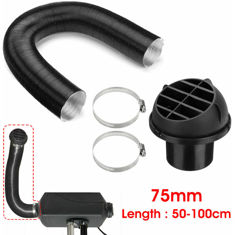br /> Materiale: foglio di alluminio Col: nero Lunghezza: 50-100 cm / 19,68-39,37 pollici Diametro: 75 mm / 2,95 pollici Applicazione: per Webasto, Dometic, Propex ecc. Caratteristiche: Utilizzato principalmente per riscaldatori ad aria diesel da 2 KW. Condotti aria calda e fredda per riscaldamento diesel Webasto, domestico, Propex ecc. Numero parte: 102114340000 o 292100010025 o 10025 2. Uscita del condotto del riscaldatore Materiale: plastica Colore: nero Altezza: 80 mm/3,15 pollici Diametro: 75 mm/2,95 pollici Altro numero parte: 20.1577.89.06.00, 201577890600, 398551, 398.551 Montaggio: per Eberspacher, Webasto, Propex e altri sistemi di riscaldamento ad aria forzata. Caratteristiche: Adatto per condotto dell' aria