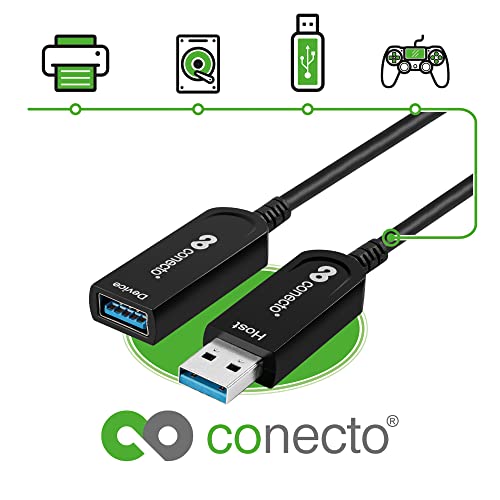 Conecto, cavo di prolunga in fibra ottica premium USB 3.1 (Gen.2) Spina USB-A a presa USB-A, cavo ibrido (fibra ottica/rame) 10 Gbps, nero, 10 m
