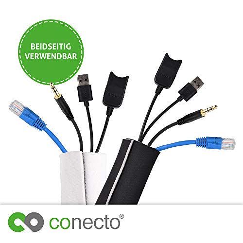 Conecto - Tubo per cavi in neoprene con chiusura in velcro, universale, 3,0 m, colore: Nero/Bianco