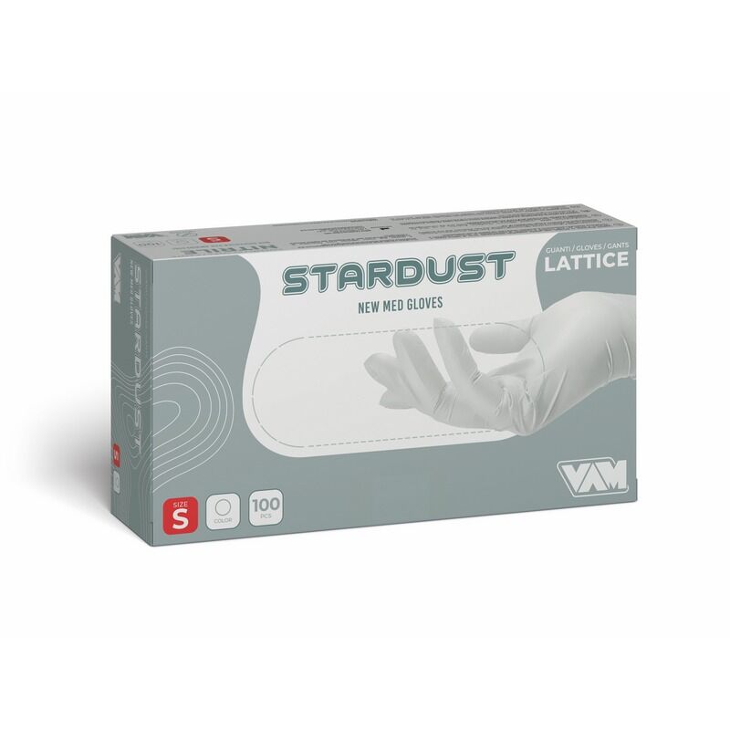 Conf. 100 pz guanti in lattice con polve re new stradust tg.m