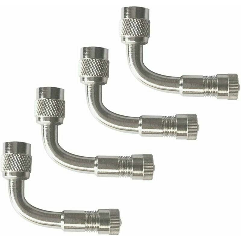 Design inclinato. Risolto con successo il problema per cui non era possibile controllare la pressione dei pneumatici o gonfiare i pneumatici con la pompa da pavimento a causa di un gioco insufficiente tra la valvola del pneumatico e i raggi. Realizzato in ottone massiccio anticorrosivo, cappuccio antipolvere in metallo, resistente. Estensore valvola universale, eccellente capacità di tenuta, facile accesso agli steli delle valvole anteriori e posteriori difficili da raggiungere, la bobina integrata consente il gonfiaggio/sgonfiaggio. Facile installazione, basta rimuovere la polvere esistente tappo e avvitarlo. L'adattatore è avvitato sulla valvola e la pompa/tubo è collegato all'altra estremità. Questa estensione dello stelo del pneumatico si adatta a tutte le autovetture, camion, motocicli, rimorchi, camper e camper con valvole per pneumatici standard statunitensi. Colore: giallo rame puro o argento cromato opzionale Dimensioni: diametro esterno inferiore 10 mm, filettatura interna