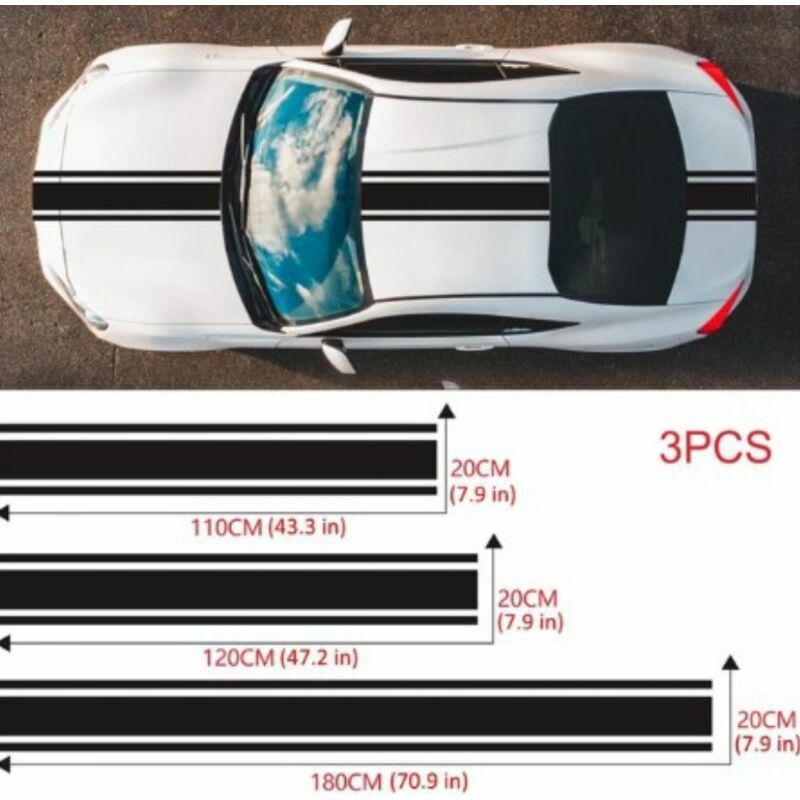 Caratteristiche: Adesivo a strisce sul cofano 3PCS, stile striscia, arredamento aggiornato per la tua auto, che conferisce alla tua auto un aspetto molto bello e attraente. Realizzato in vinile di alta qualità. qualità, impermeabile, anticorrosivo, mai sbiadito, ecologico. Autoadesivo e rimovibile, non danneggerà la tua auto. Un modo semplice e indesiderato per migliorare la tua esterno del veicolo. Caratteristiche: Materiale: vinile < p>Colore: nero, bianco < p> Dimensioni: 20*110CM/20*120CM/20*180CM Elenco dei pacchetti: 3 adesivi per auto