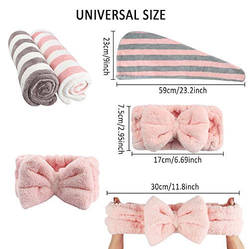 Confezione da 3 asciugamani per capelli in microfibra da donna + 1 confezione di fasce elastiche con papillon per trucco, asciugamani intrecciati per capelli lunghi e fasce per lavare il viso