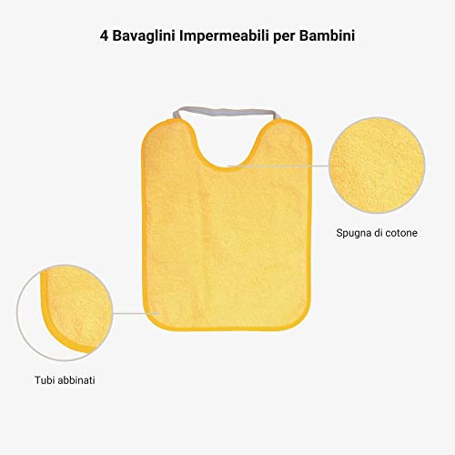 Ti TIN | Confezione Da 4 Bavaglini Impermeabili Per Bambini con Chiusura Elastica | 90% Cotone-10% Poliestere con Federa in Vinile |Set di 4 Bavaglini Per Bambini con Età Superiore a 1 Anno | 28x32cm