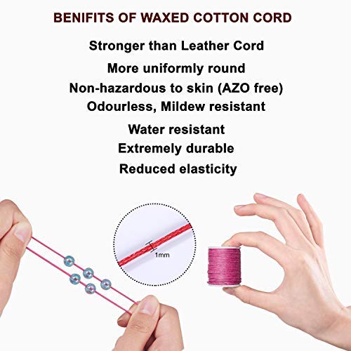 RESISTENTE: Le nostre bobine di cordino cerato sono resistenti, per tutte le tue esigenze di creazione gioielli. Non si romperanno, sfilacceranno, o ingarbuglieranno in quanto cerate. La cera tiene il filo di poliestere unito per tutti progetti artigianali.
