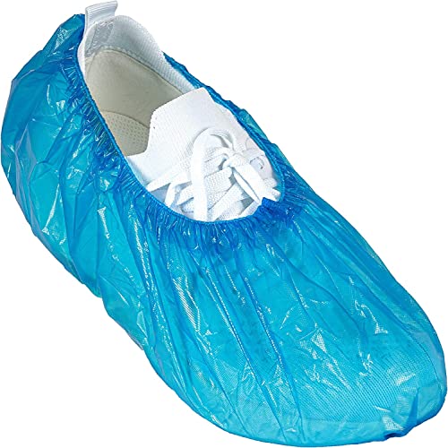 Confezione da 100 calzini copriscarpe usa e getta impermeabili antiscivolo in plastica CPE, protezione per scarpe usa e getta extra forte, taglia unica, Plastica