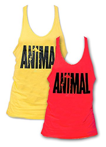 Confezione da 2 canottiere da palestra e bodybuilding con scritta "Animal" (lingua italiana non garantita), Red + Yellow, Asia Medium