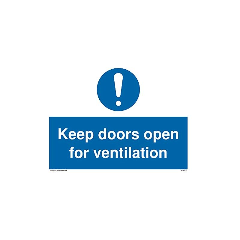 Confezione da 5 Cartello con scrittaKeep doors open for ventilation, 200 x 150 mm, A5L