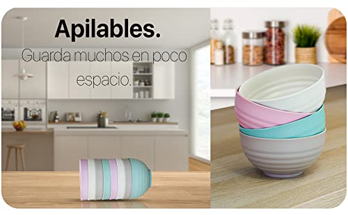 Confezione da 8 ciotole infrangibili, Ciotola per Cereali, Insalate, Zuppe, Realizzata in Plastica Ultraresistente, Facile da Lavare, Lavabile in Lavastoviglie e Microonde