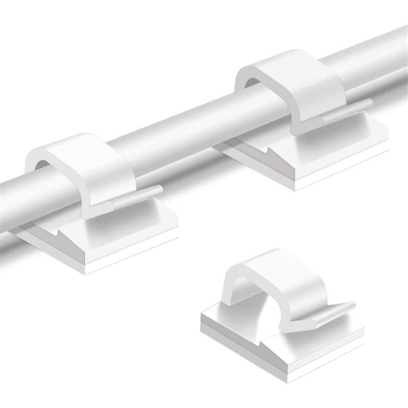 Clip autoadesive: la nostra clip di supporto per cavi è dotata di un robusto cuscinetto adesivo che aderisce a qualsiasi superficie piana e asciutta come scrivanie, tavoli e pareti in vetro, metallo o legno. Facile da rimuovere senza residui o danni. Confezione da 50 pezzi: questa confezione include 50 fermacavi adesivi bianchi, adatti per fili di diametro inferiore a 0,26 pollici. Quantità e dimensioni perfette per soddisfare le tue esigenze di uso quotidiano. Robusti e durevoli: queste clip metalliche sono realizzate in materiale PA66 ecologico di alta qualità, solidamente costruito per una lunga durata. Inoltre, sono compatti, poco ingombranti e portatili ovunque. Ampia applicazione: sono super utili per organizzare vari cavi, inclusi cavi di rete, cavi per computer, cavi USB, cavi TV, cavi per la luce di Natale, eccetera. Ampiamente usato in casa, in ufficio e in auto. Facile da installare: faresti meglio a premere i 4 angoli per renderlo più adesivo e stabile, quindi usarlo 2 ore