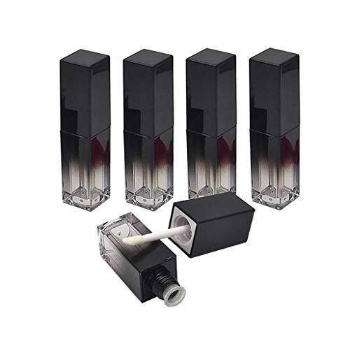 Confezione da 5 contenitori vuoti per lucidalabbra da 5ml colore nero sfumato in plastica ricaricabile per rossetto e balsamo per labbra con tappo in gomma e applicatore per pennelli per il trucco