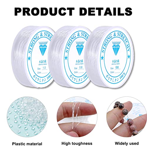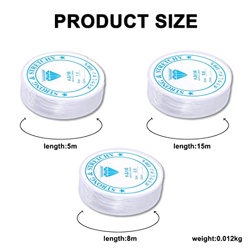 Confezione da 3 cordini elastici resistenti per braccialetti da 0,6 mm 0,8 mm 1,0 mm in nylon trasparente per ciondoli con collana di perline