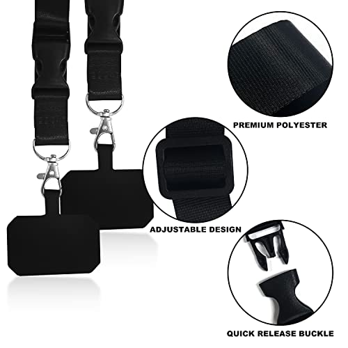 Confezione da 2 cordini regolabili per cellulare, custodia smartphone, tracolla rimovibile, adatta alla maggior parte modelli di smartphone, cellulare, fotocamera, porta carte (nero, grigio), Nylon