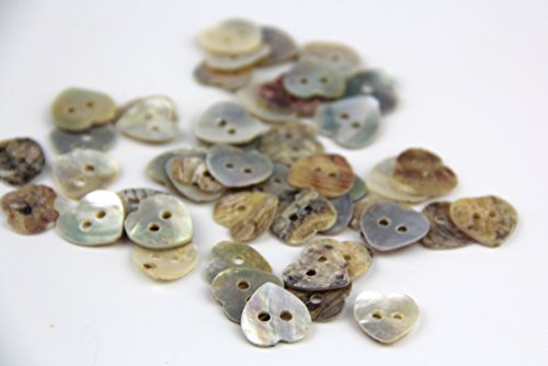 Confezione da 50 cuore di madreperla giallo buttons. delicate Shell naturale, circa: 12 mm, dimensione foro: 1 - 2 mm, spessore: 1.2 mm