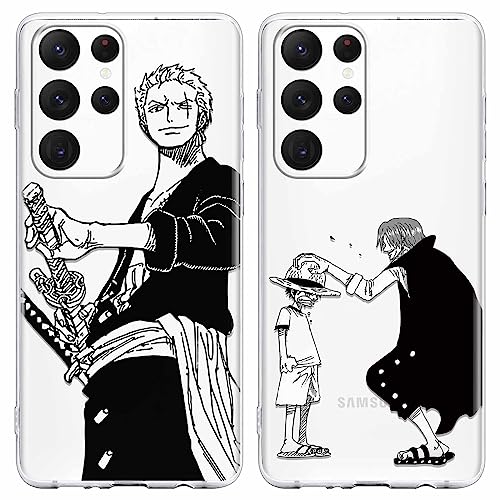 2 Confezione Custodia per Samsung Galaxy S22 Ultra 5G 6.8",Anime Zoro Trasparente Protezione Case Morbida TPU Antiurto Silicone Anime Luffy Cover per Samsung S22 Ultra 5G