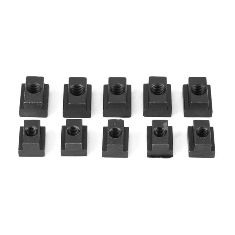 Questi dadi con scanalatura a T sono realizzati in acciaio 45, anodizzato nero, elevata durezza, elevata resistenza e durata. Scanalature del tavolo macchina cementate troppo piccole Per estrusione di alluminio con scanalatura a T per collegare altre parti La parte inferiore del dado scorrevole è bloccata per evitare che il bullone scivoli fuori i dadi a T consentono agli utenti di fissare i morsetti agli infissi senza strappare i morsetti esistenti