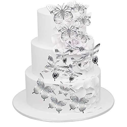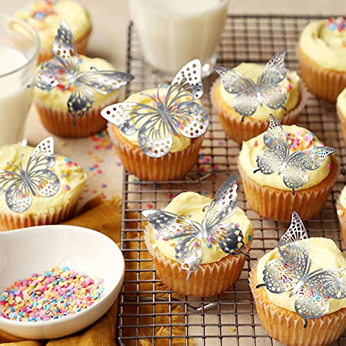 Confezione da 36 decorazioni per cupcake a forma di farfalla in 3D con glitter argentati, decorazioni per torte di compleanno, matrimonio, farfalla, adesivo da parete per sfondo decorazione da parete