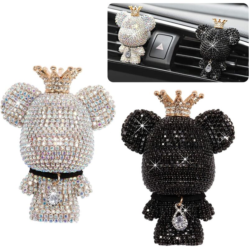 Clip per bocchetta d'aria per auto con orsetto con strass Bling - Riceverai 2 pezzi di deodoranti per ambienti a forma di orso per l'auto, forma carina e lucida, rende la tua auto sempre divertente ed elegante, la bocchetta d'aria bling per l'auto aggiunge più divertimento al tuo viaggio . (Si prega di notare che la confezione non viene fornita con una tavoletta profumata.) 【Rilassati】 Puoi far cadere il tuo profumo o olio essenziale preferito nel pezzo di cotone nella scanalatura sul retro dello sfiato dell'auto con strass clip e, con il funzionamento della presa d'aria, sentirai l'odore che ti piace, ridurrai l'ansia negli ingorghi o durante la guida. 【Materiale di alta qualità】Realizzato al 100% sicuro ed ecologico cristallo amichevole, i nostri deodoranti per auto non sono tossici e le clip possono ruotare liberamente con il vento dell'aria condizionata. Puoi anche far cadere un po' del tuo profumo preferito su un batuffolo di cotone e metterlo nello spazio vuoto. 【Facile da