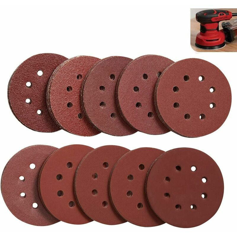 Nuovo design - Con le parti seghettate, le foglie di sono facili da separare in due metà. Hook and loop, facile e veloce da attaccare. I dischi abrasivi da 125 mm sono a strappo, facili da installare e rimuovere. Soddisfa tutte le tue esigenze - Tutti i gradi di grana, inclusi 10 fogli di ogni grana: 40# 60# 80# 100# 120 # 180# 240# 320# 400# 800#, totale 100 fogli da grossolani a fini. Ampia applicazione: ideale per lucidatura di metalli, rimozione della polvere, ruggine, lavorazione del legno, plastica, pelle, gomma e vetro. Da grossolana a fine, soddisfano la maggior parte delle tue esigenze di lucidatura con un buon effetto levigante. UNIVERSALE - Usato per applicare finiture levigate su legno, vernice, gesso, metalli, compositi e molti altri materiali. Adatto per più levigatrici. Resistente e antistatico - Realizzato con abrasivi di allumina di alta qualità, ideali per la levigatura e la lucidatura.