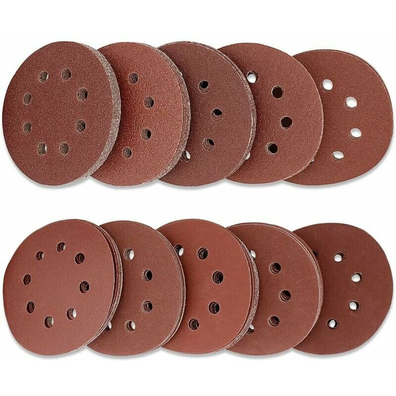 Nuovo design - Con parti seghettate, i fogli Multi-Sander sono facili da separare in due metà. Gancio e anello, facile e veloce da attaccare. I dischi abrasivi da 125 mm sono a strappo, facili da installare e rimuovere. Soddisfa tutte le tue esigenze - Tutti i gradi di grana, inclusi 10 fogli di ogni grana: 40# 60# 80# 100# 120 # 180# 240# 320# 400# 800#, totale 100 fogli da grossolani a fini. Ampia applicazione - Ideale per la lucidatura dei metalli, la rimozione della ruggine, la lavorazione del legno, la plastica, la pelle, la gomma e il vetro. Da grossa a fine, soddisfano la maggior parte delle tue esigenze di lucidatura con un buon effetto levigante. UNIVERSALE - Usato per applicare finiture levigate su legno, vernice, gesso, metalli, compositi e molti altri materiali. Adatto a levigatrici multiple. Durevole e antistatico - Realizzato con abrasivi di allumina di alta qualità, ideale per levigare e lucidare.