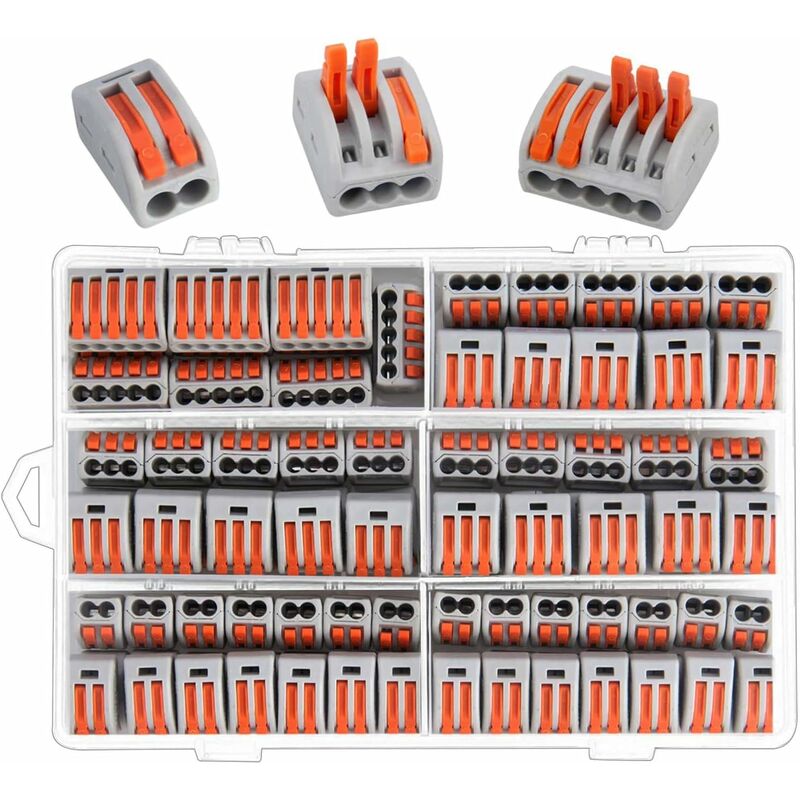 Set di 100 terminali elettrici 100 pezzi: PCT-212 (2 porte, 40 PCS), PCT-213 (3 porte, 50 PCS), PCT-215 (5 porte, 10 PCS) . Connettori universali: adatti per fili pieni da 0,08 a 4 mm² e trecciati da 0,08 a 2,5 mm². Facile da usare e riutilizzabile. Scollega il cavo di 9-10 mm a seconda della lunghezza dietro il connettore. Tirando la mano a 90°. Inserisci il filo. Spingi verso il basso. Nessuna perdita Non c'è bisogno di avvolgere il nastro, ridurre l'isolamento, rifiutare scosse elettriche, incendi, ecc. Facile da usare. < p> Spellare il filo per un breve periodo e fissarlo. Anello di sicurezza di prima qualità. Assicurati che la connessione via cavo sia sicura e senza problemi. Tensione nominale: 250V, 4KV. Corrente nominale: 32 Corrente nominale: 7 kW Cavo applicabile: 0,08-2,5 (4) mm² AWG28-14 (12) Materiale parte conduttore: stagno elettrolitico di rame. Molla di bloccaggio: acciaio legato al nichel-cromo. Scocca: plastica ignifuga.