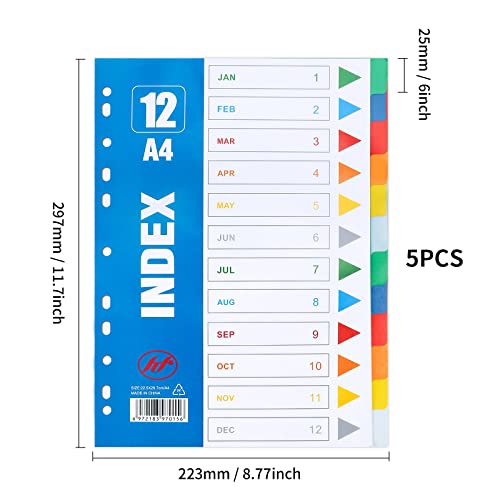 Confezione da 5 divisori Aividers formato A4 extra largo, 12 divisori A4 con linguette vuote, divisori multiperforati A4 per raccoglitori ad anelli, divisori in plastica