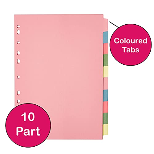 Confezione da 5 - A4 Divisori Raccoglitori ad Anelli in 10 Parti con Fori Multipli in Colori Assortiti | Adatto a Tutti i Divisori per File Verticali A4