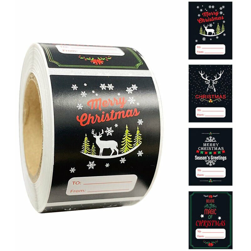 Etichette autoadesive Merry Christmas nere Carta di alta qualità, dimensioni: 3,8 cm x 5 cm. Confezione da 300 etichette adesive. Ideale come etichette regalo di Natale, etichette regalo o altri biglietti da visita. Perfetto per adesivi natalizi e dolcetti fatti a mano, biscotti bomboniere o progetti artigianali.