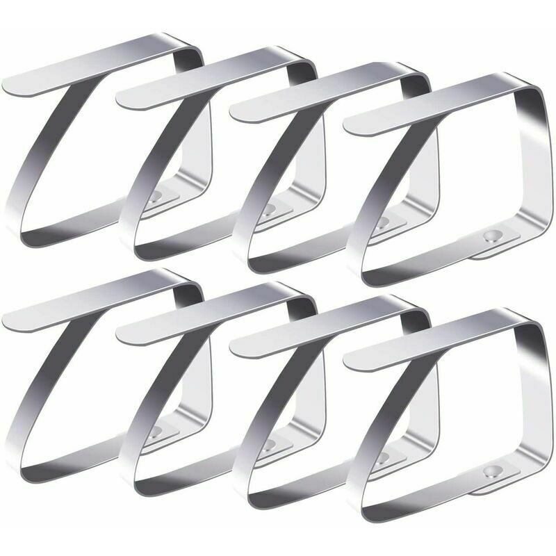 Materiale: questi fermagli per tovaglia sono realizzati in acciaio inossidabile, resistenti e durevoli, puoi usarli ripetutamente, servire a lungo. l'acciaio inossidabile ha una resistenza alla corrosione incorporata, ma può corrodersi e arrugginirsi in determinate condizioni, ma non così rapidamente o gravemente come gli acciai convenzionali. Convenienza: semplice da usare, facile da installare, il colore argento è luminoso e bello Ampia applicazione: adatto a casa, feste, picnic, ristoranti, matrimoni, buffet, cene, ecc., mantiene i tavoli antiscivolo delle tovaglie anche con il vento Dimensioni: Ogni clip per tovaglia misura circa 7,5 x 7 cm, per piani fino a 5 cm di spessore . I portatovaglioli in confezione da 8 sono perfetti per tavoli da picnic o tavoli da pranzo.