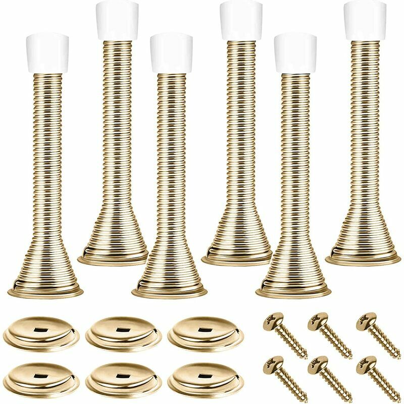 Fermaporta a molla in metallo: i nostri fermaporta a molla sono realizzati in metallo resistente, robusto e non facile da deformare, resistente all'usura e non facile da arrugginire. Puoi installarli in soggiorno, camera da letto, bagno, ufficio, ecc., per evitare che la porta colpisca il muro e segni. Fermaporta in gomma a parete: i nostri fermaporta in metallo possono proteggere efficacemente porte e pareti da un forte impatto reciproco, impedendo alla maniglia della porta di colpire direttamente il muro e fornendo una buona barriera tra la porta e il muro. Fermaporta con viti: il design della base e della molla può disperdersi la forza d'urto della maniglia della porta sul muro e fornisce un'eccellente protezione, e la gomma sulla parte superiore può fornire una protezione sufficiente. La molla ha una forte tenacità, può piegarsi in modo flessibile e tornare alla forma originale, la punta in gomma può evitare segni sul muro o sulla porta. Fermaporta Tampone in gomma: la lunghezza