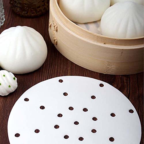 Confezione da 100 fogli di carta dim sum, inserti per vapore, friggitrice ad aria calda, rivestimento antiaderente, carta da forno rotonda, carta di bambù perforata (12,7 cm)