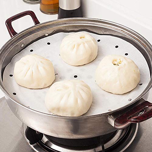 Design perforato: il design del foro ventilato della nostra carta per vapore consente un'eccellente circolazione del vapore, il cibo assorbe completamente l'umidità e cuoce rapidamente.