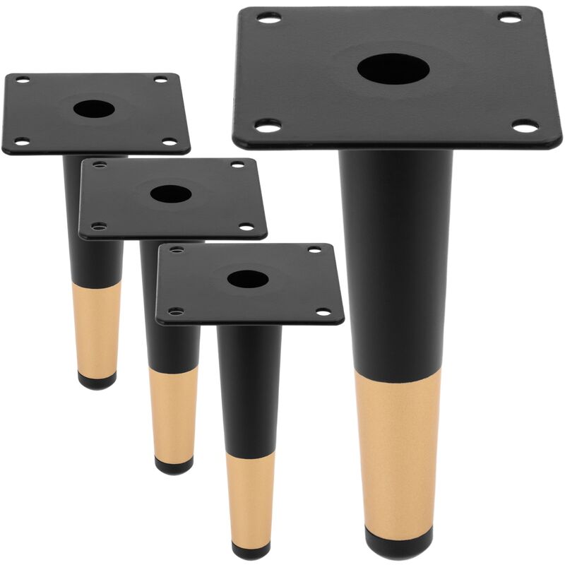 Questa confezione di 4 gambe di ricambio per mobili dritte affusolate alte 15 cm è un set di pezzi progettati per sostituire le gambe dei mobili danneggiate o per dare un nuovo look a un mobile esistente. Hanno una forma triangolare e si restringono verso il basso. Inoltre, queste gambe sono di colore nero con finitura oro, che le rende particolari ed eleganti. Sono utilizzati per sostenere e stabilizzare mobili come tavoli, sedie per bambini, divani e altri tipi di mobili per la casa o per l'ufficio. Caratteristiche del prodotto: CARATTERISTICHE: Questa confezione comprende quattro gambe, sufficienti per arredare un mobile completo. Queste gambe sono facili da installare e possono essere adattate a diversi tipi di mobili grazie ai loro fori nella base che ne consentono l'installazione tramite viti (incluse). APPLICAZIONE: Questa confezione di 4 gambe ti consente di sostituire le gambe di supporto, offrendo un aspetto moderno ai tuoi mobili, sia perché le precedenti sono state