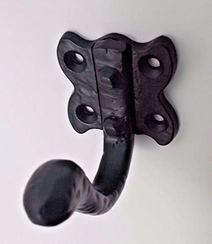 Confezione di 2 ganci appendiabiti Tudor, in ferro battuto, nero, effetto martellato, viti inclusi, CEN043