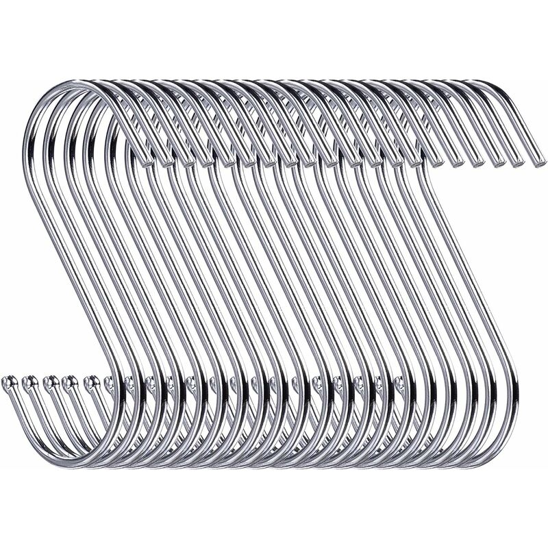 peso massimo: 5 kg. Lunghezza: 9 cm A forma di S, senza colla o viti. Ideale per utensili da cucina e può essere applicato a parete per organizzare utensili da cucina come pentole, padelle, mocio, cucchiai per risparmiare molto spazio in cucina. Questi ganci sospesi sono adatti anche per l'uso in un armadio, bagno, bagno, garage, officina e ufficio o come cesto per piante sospese, campanile o lanterna all'aperto con questi robusti ganci in acciaio come desideri. Contenuto della confezione: 20 ganci Dimensioni: 9 cm Colore: argento. Descrizione del prodotto Ampiamente usato Utilizzare in cucina, per pentole, tazze, guanti, ecc. Utilizzare in camera da letto, jeans, sciarpe, cappelli, cinture, ecc. Utilizzare in giardino, per piante, attrezzi, borse, ecc. Da utilizzare in bagno, come asciugamano, palla da bagno, vestiti, ecc.