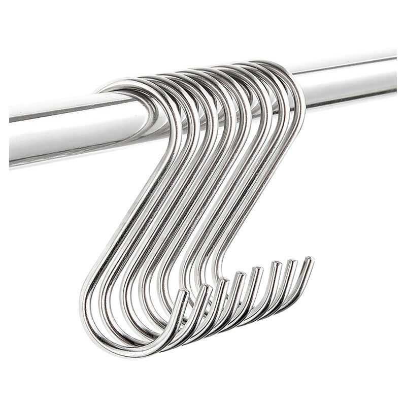 Peso: 5 g Taglie: 7*2,2*2,2 cm Colore come mostrato ALTA QUALITÀ - I nostri ganci S sono realizzati in metallo in acciaio inossidabile 304 di fascia alta, antiruggine, robusto e ben fatto. Questi ganci a S hanno una superficie liscia senza spigoli vivi per proteggere la mano dai graffi. Il gancio a S sarà il tuo miglior supporto e la prima scelta per i tuoi acquisti. STILE ELEGANTE E MODERNO » Questi ganci a forma di S con una piccola apertura su un'estremità potrebbero adattarsi bene a portapentole o binari piatti a parete, l'altra grande estremità di apertura è perfetta per appendere pentole, padelle, coperchi o tazze da caffè in ghisa, ecc. Due dimensioni di aperture per soddisfare le tue diverse esigenze. FORTE E CONVENIENTE - I ganci a S in metallo sono forti e spessi per resistere a pesi elevati e non facili da deformare, che sono ampiamente applicati nell'armadio, cucina, bagno, ripostiglio, garage, officina, ufficio ecc. FACILE DA USARE-I ganci a forma di S sono