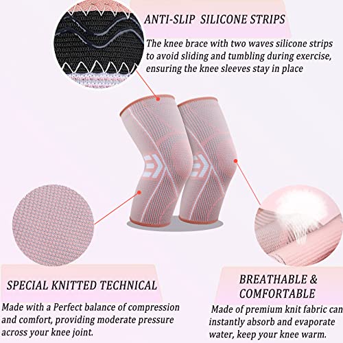 Confezione da 2 ginocchiere per donne, ginocchiere a compressione per artrite, dolori articolari, sollievo dal dolore (rosa, M)