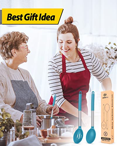 Confezione da 2 grandi cucchiai da cucina in silicone, antiaderenti e resistenti al calore, utensili da cucina per miscelare, servire, drenare, mescolare (blu)