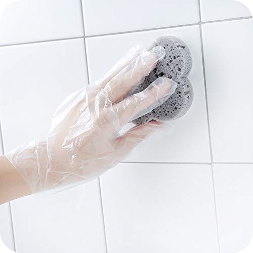 Confezione da 100 guanti usa e getta in plastica trasparente, in polietilene, adatti per la pulizia degli alimenti, senza polvere, senza lattice e comodi da indossare