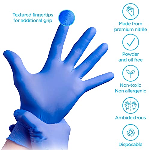 AVO+ Confezione da 10 guanti monouso grandi, protettivi ipoallergenici senza lattice, guanti in nitrile premium resistenti, ideali per pelli sensibili, antiscivolo, senza olio, senza polvere