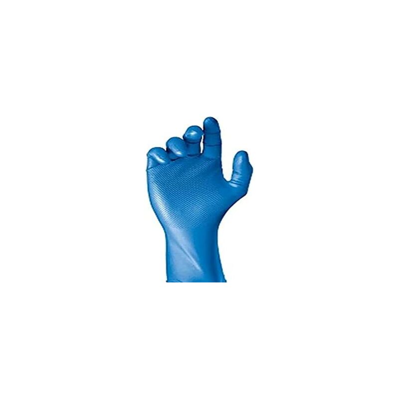 Scatola di 50 guanti monouso blu in nitrile senza polvere taglia 8 juba. guanto grippaz, guanto ambidestro monouso in nitrile senza polvere. colore blu, spessore 0,15 mm. usi: assemblaggio, verniciatura a spruzzo, industria chimica (rischi minimi), manutenzione di veicoli, servizi di pulizia, agricoltura / orticoltura, officine, uso generale.