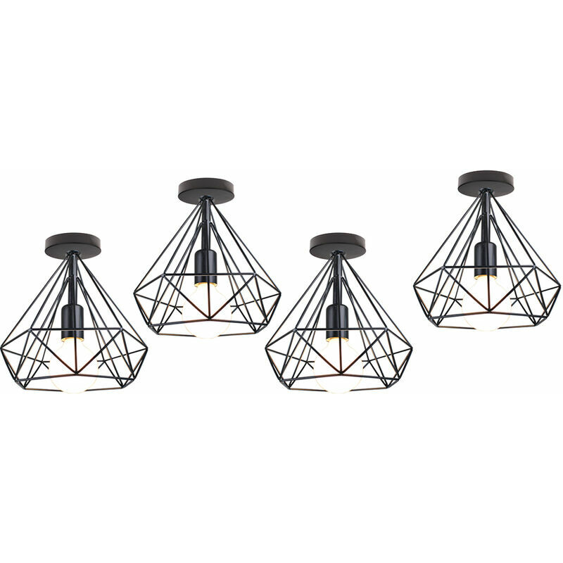 Sorgente luminosa: E27 (lampadina non inclusa) • Ideale per corridoio, soggiorno, sala da pranzo, cucina, camera da letto, hotel, ristorante, caffetteria o bar per romantiche illuminazione ambientale. • Specifiche: ◂ Materiale: metallo ◂ Stile: industriale, vintage, retrò ◂ Dimensioni: 25x25 cm ◂ Diametro base soffitto: 10 cm ◂ Potenza lampadina: 40-60 W ◂ confezione: 4 plafoniere ◂ colore: nero • Facile da installare: la lampada include viti di montaggio, è possibile installarla facilmente.Si prega di controllare le dimensioni del