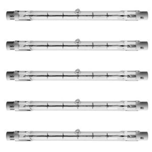 Confezione di 5 lampadine Bell 03843 da 120 W e 117 mm, lineari, alogene, al tungsteno e trasparenti, R7 2700 K, 230/240 V AC con torcia portachiavi a LED