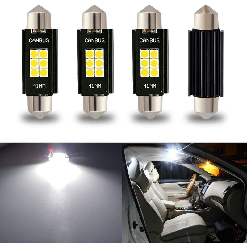 Confezione da 4 lampadine - Chipset LED 6SMD 3030 ad alta potenza per lampadina, una luce bianca estremamente brillante migliorerà la tua auto. Compatibilità: 211-2, 212-2, 214-2, 2112, 2122, 2142, 578, 576, 560, 569 ecc. Facile da installare, basta plug and play. APPLICAZIONI: Luci interne della mappa, luci della cupola, luce targa, luci di posizione, luci d'angolo, luce del bagagliaio, luci di posizione laterali, luce di cortesia, luce del carico, luci del bagagliaio, luci del vano scala, luci di cortesia ecc. Dotato di 6SMD Chipset LED 3030 ad alta potenza, 300% più luminoso della lampadina alogena. Costruito in IC a corrente costante per una lunga durata, 5 volte più lungo della lampadina alogena. Progettato con non polarità e ampio voltaggio per la maggior parte dei veicoli da 9-30 V.